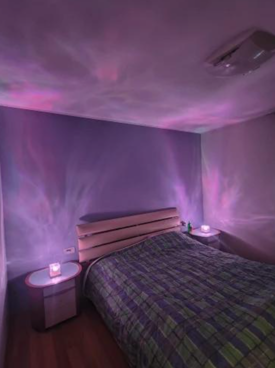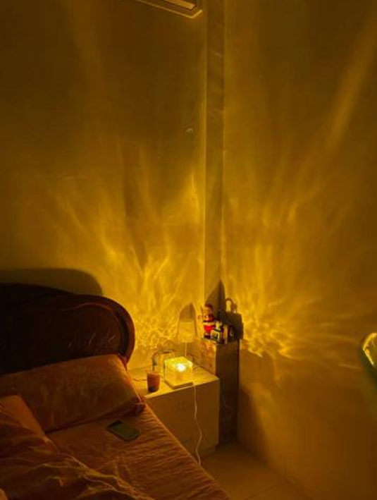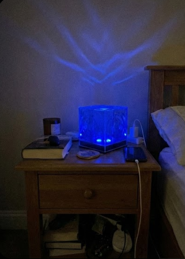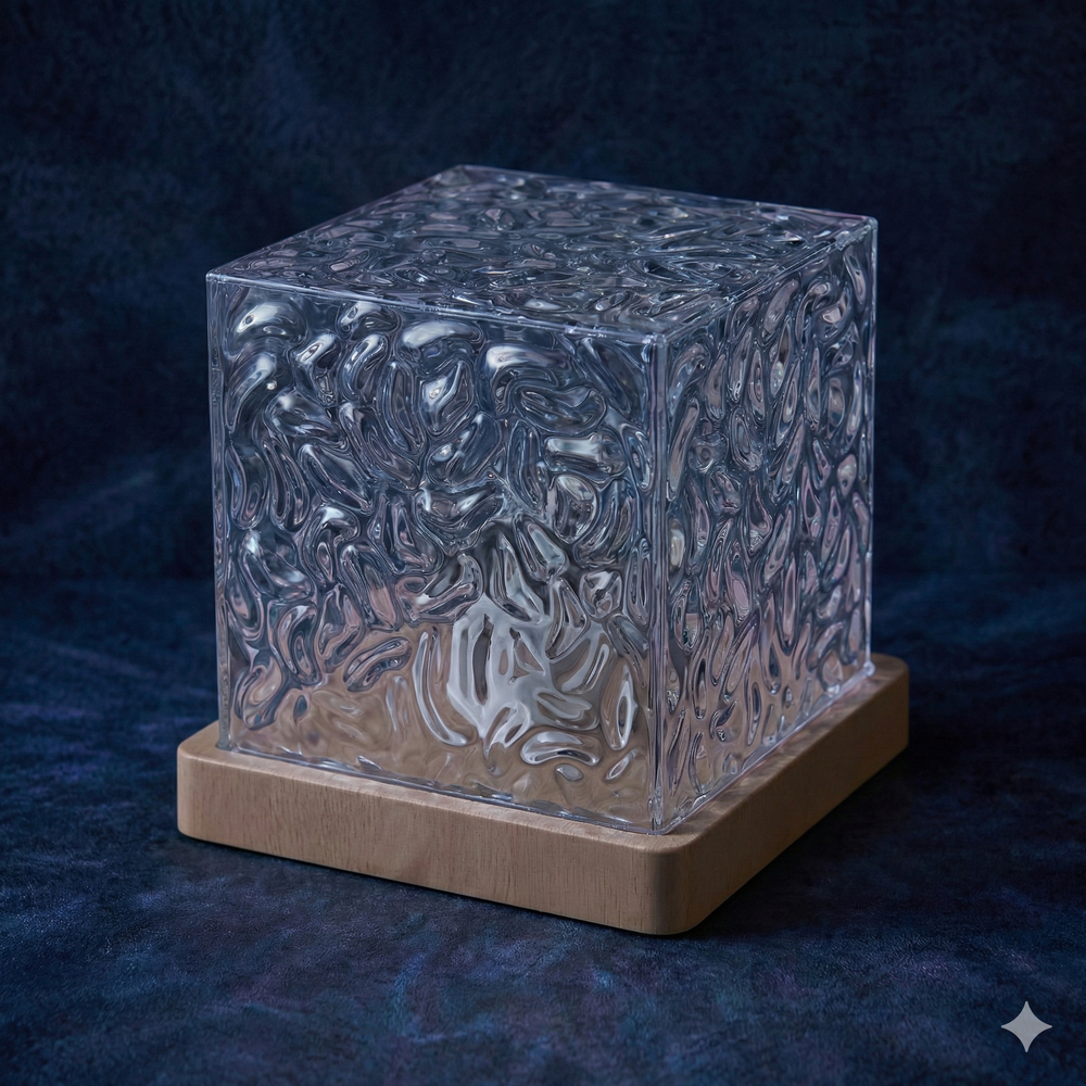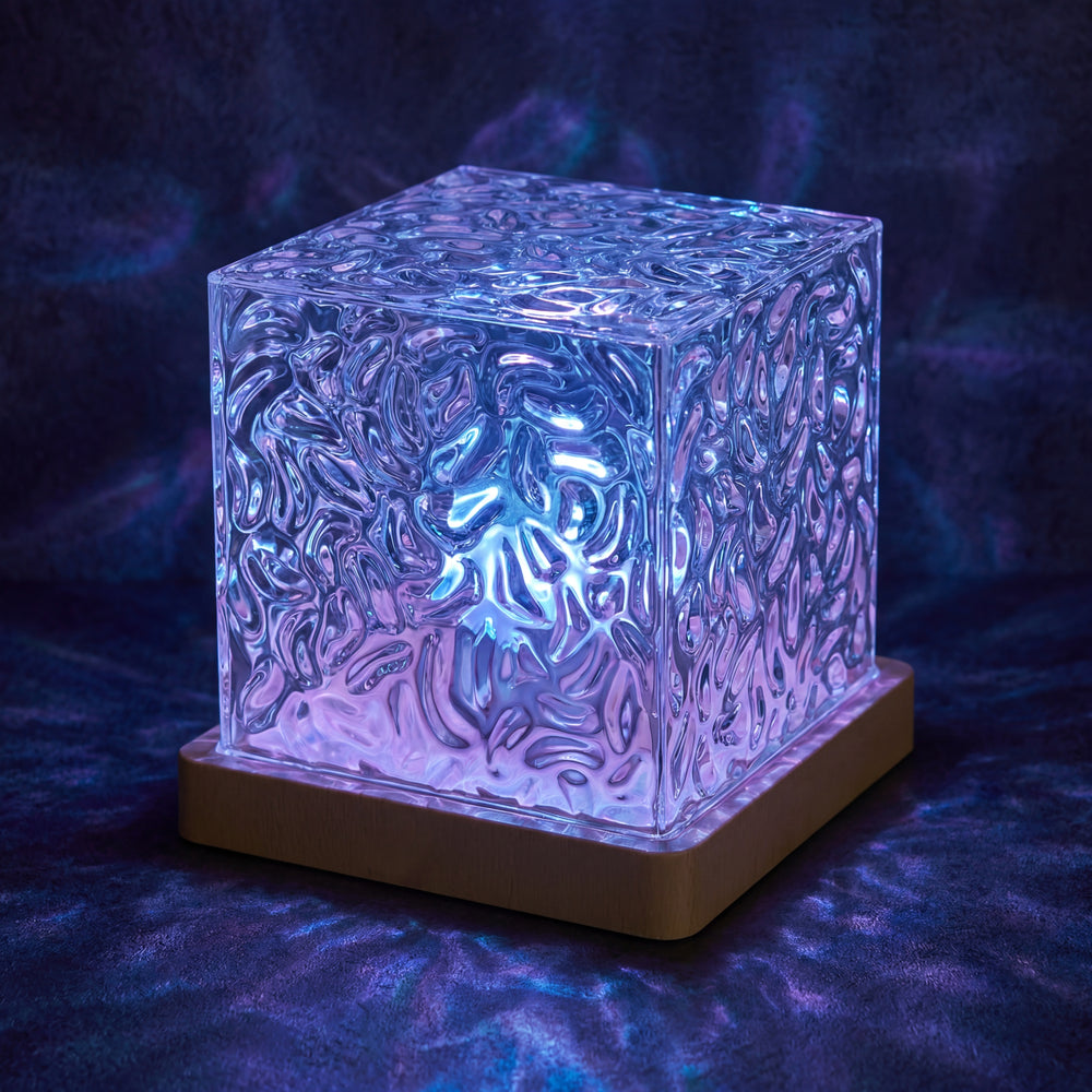Create a living atmosphere with fluid, 3D water effects that trigger deep relaxation, unlike the flat, artificial lights found elsewhere.
